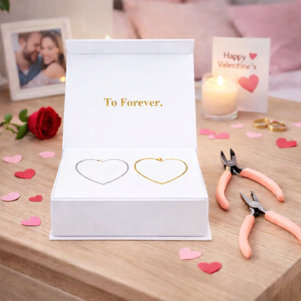 La pulsera está hecha con materiales duraderos y de alta calidad, resistentes al uso diario, para que tu amor eterno se mantenga intacto.